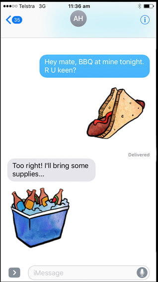 Send an icon directly from the G'dayMoji app, or use the custom G'dayMoji keyboard while you’re messaging.